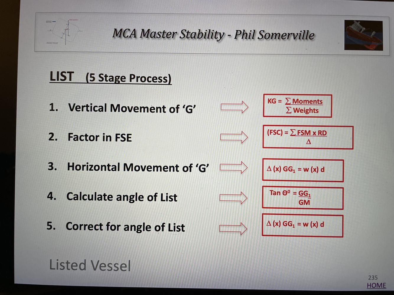 and length of the pendulum, the angle of list can be calculated very accurately.