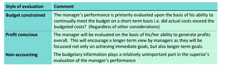 What are three distinct ways of using budgetary information to evaluate performance? What term is given to this style of evaluation