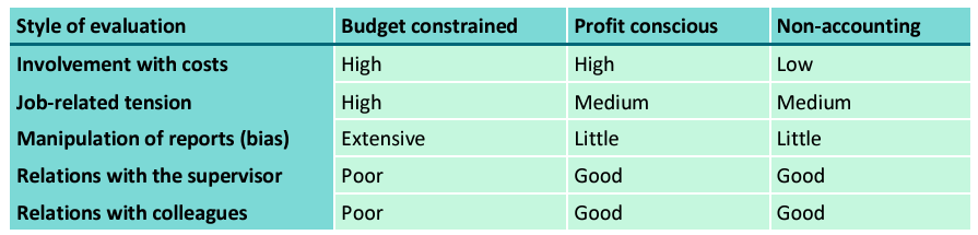Outline what effect the three Hopwood’s styles of evaluation will have on the following: i) Involvement with costs ii) Job-related tension iii) Manipulation of reports (bias) iv) Relations with the supervisor v) Relations with colleagues
