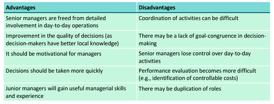 Divisional managers are then given the authority to make decisions concerning the activities of their divisions.