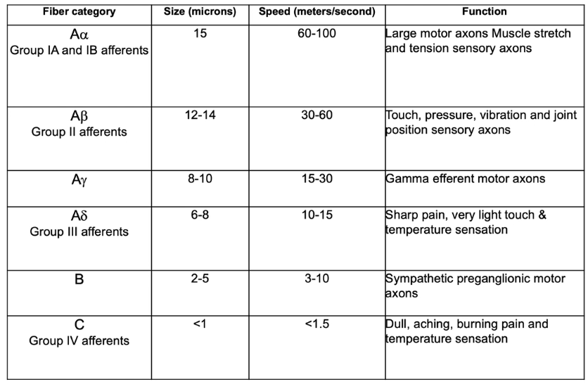 What is the function of each fibre type?