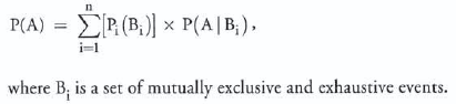 P(A) = P(A|B1) x P(B1) + P(A|B2) x P(B2) + … + P(A|BN) x P(BN)
