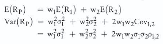 The expected returns and variance on a 2-asset portfolio are given by: