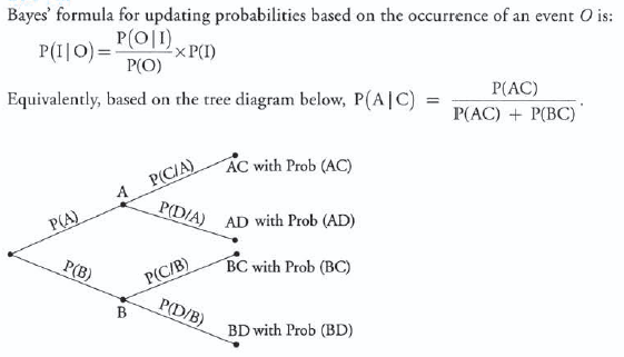Bayes’ formula for updating probabilities based on the occurrence of an event O is: