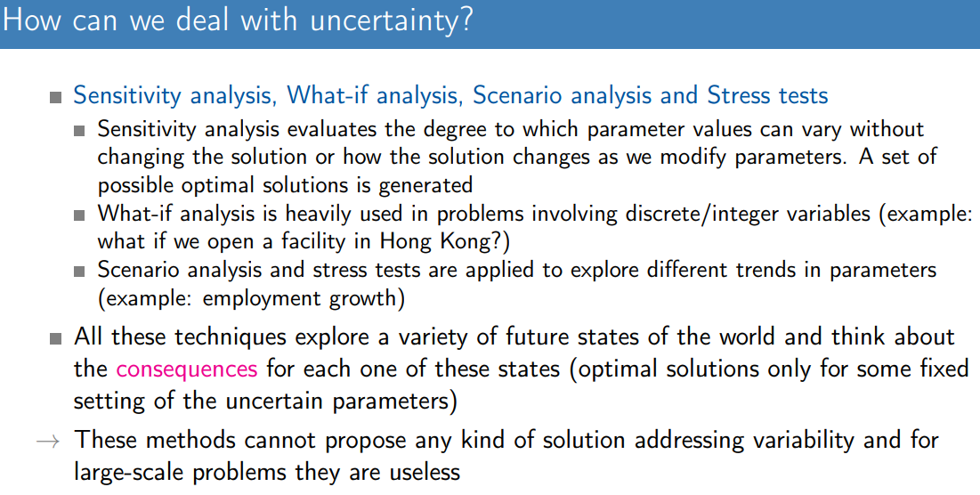 Sensitivity analysis, What-if analysis, Scenario analysis and Stress tests