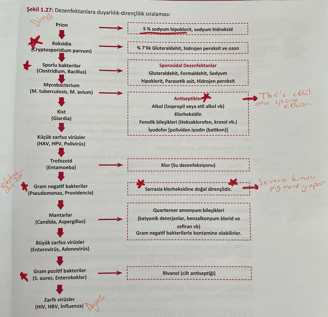 Dezenfektanlara duyarlılık sıralaması