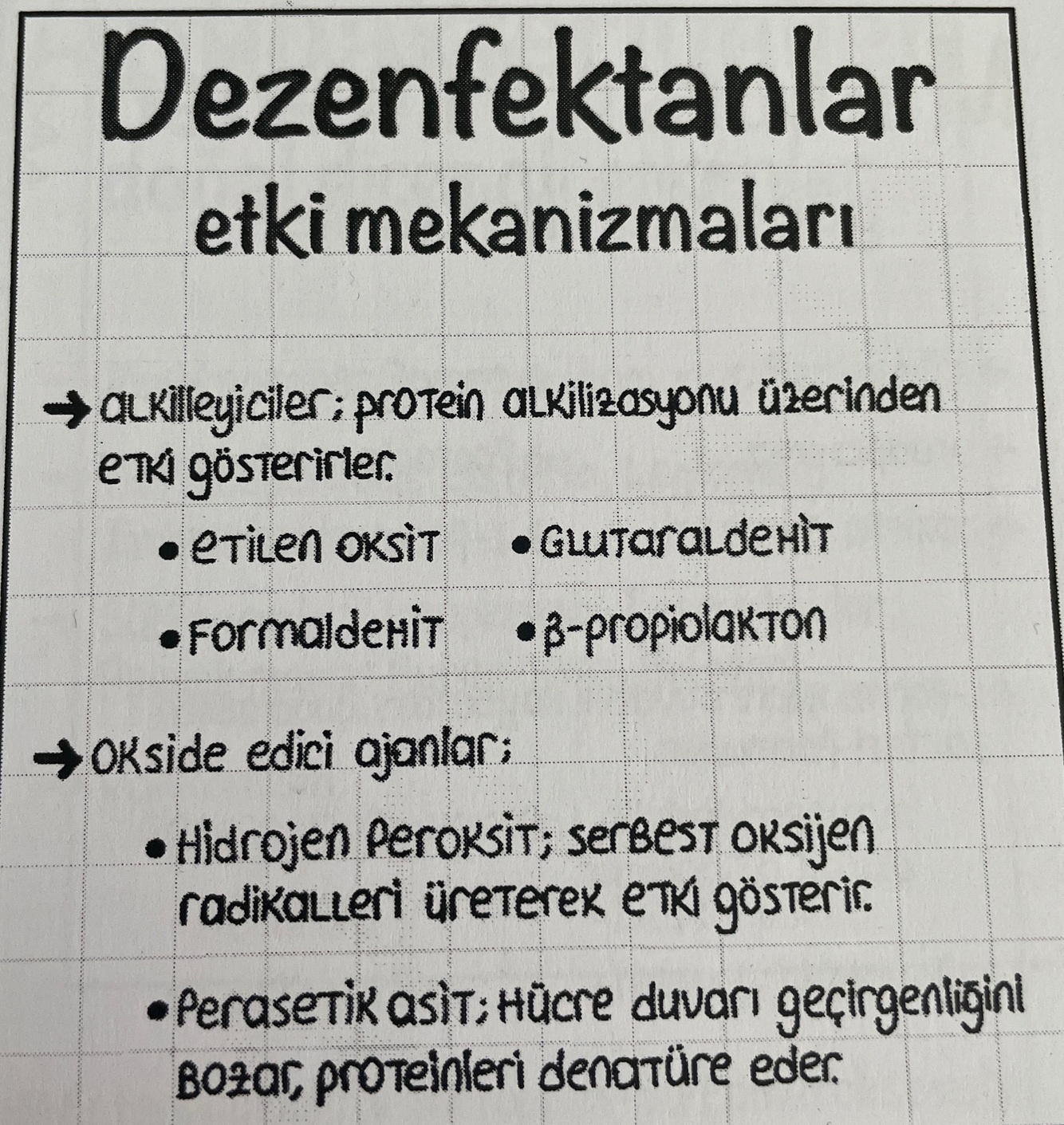 Perasetik asit (hücre duvar geçirgenliğini bozar)