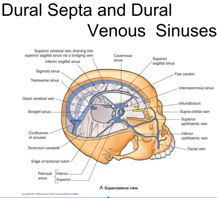 What makes up the cranial dural septa?
