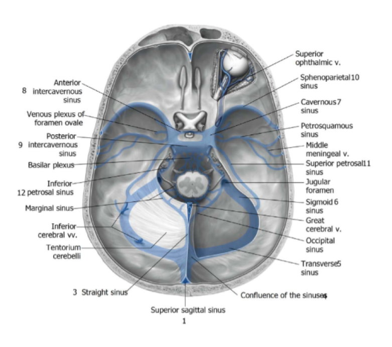 The venous return of the cavernous sinus.
