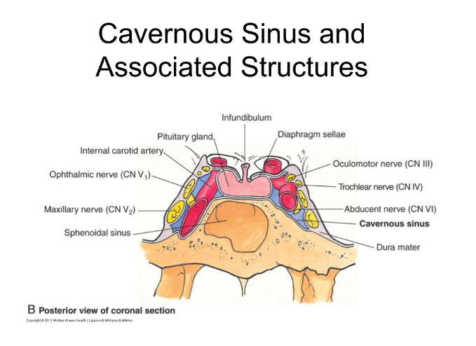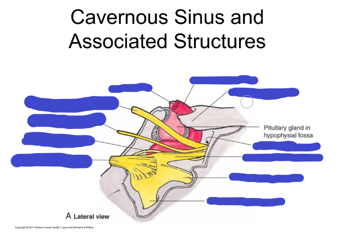 What structures would be occluded by a pituitary mass pressing into the cavernous sinus?