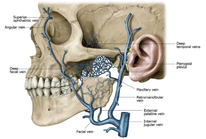 What connects the facial vein to the cavernous sinus?