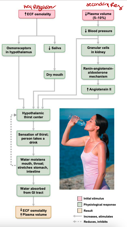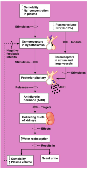 Increases in plasma osmolality trigger thirst and release of antidiuretic hormone (ADH)