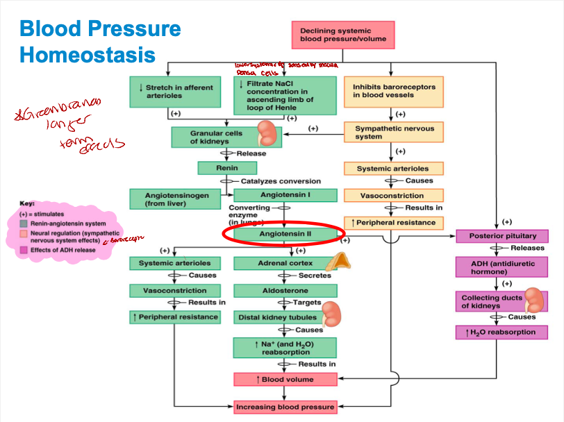 Baroreceoptors alert the brain of increases in blood volume that cause a decrease in SNS impulses to kidney leadings to