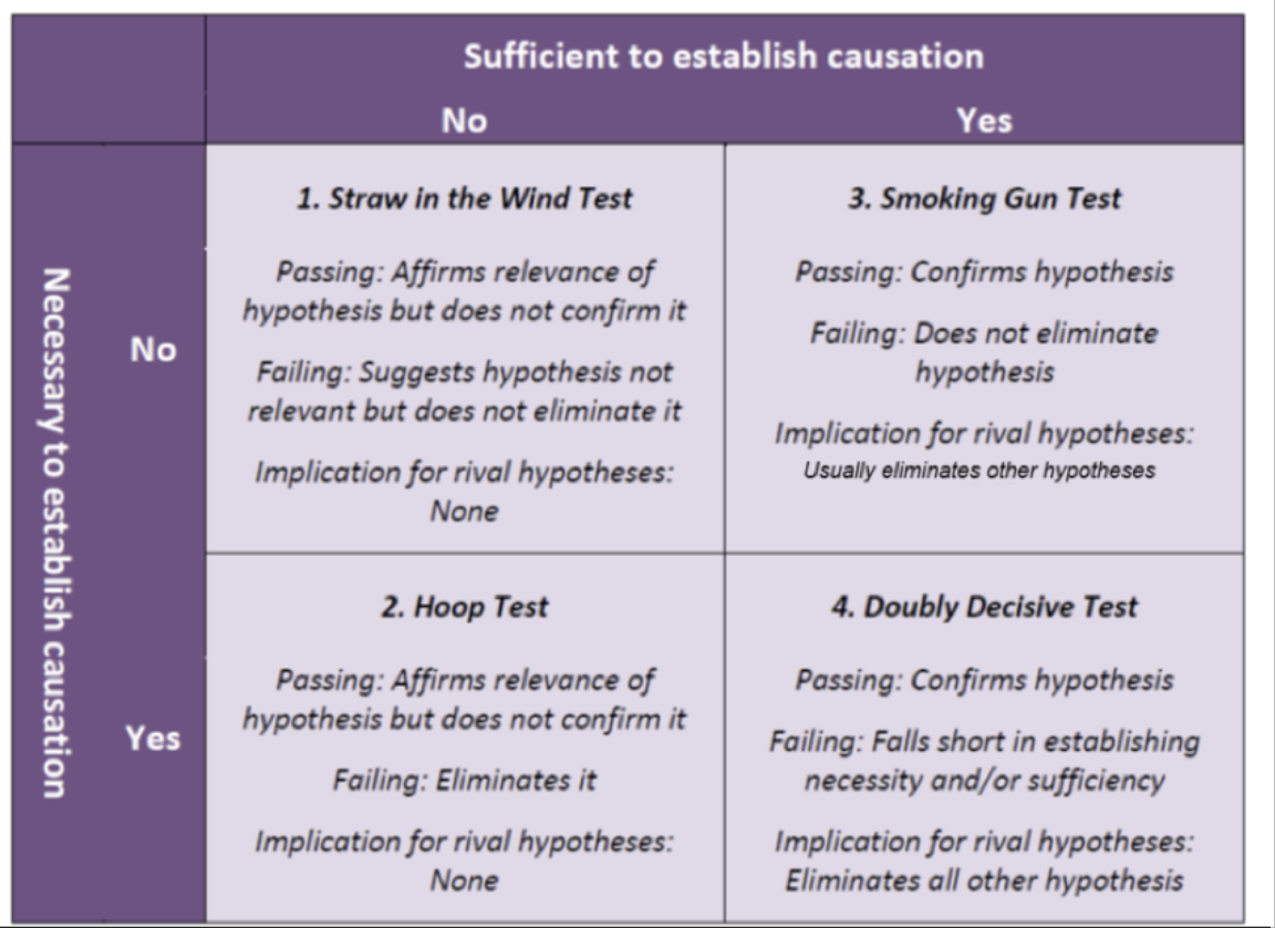 What are the 2 criteria in process tracing tests?