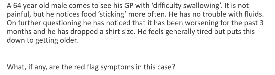 Describe, where in the oesophagus (e.g. proximal or distal), you are most likely to find the following: