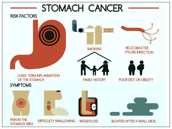 Other than adenocarcinomas, state two other cancers that can occur in the stomach