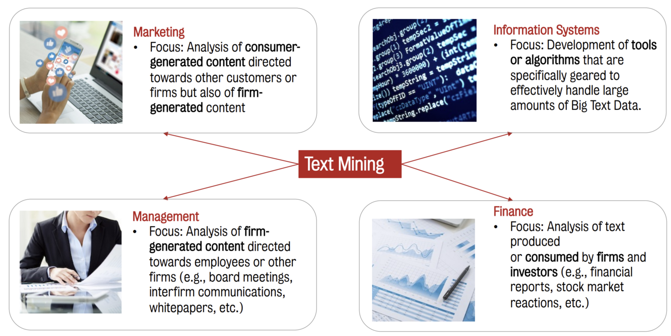 What are 4 main applications of “text mining”?