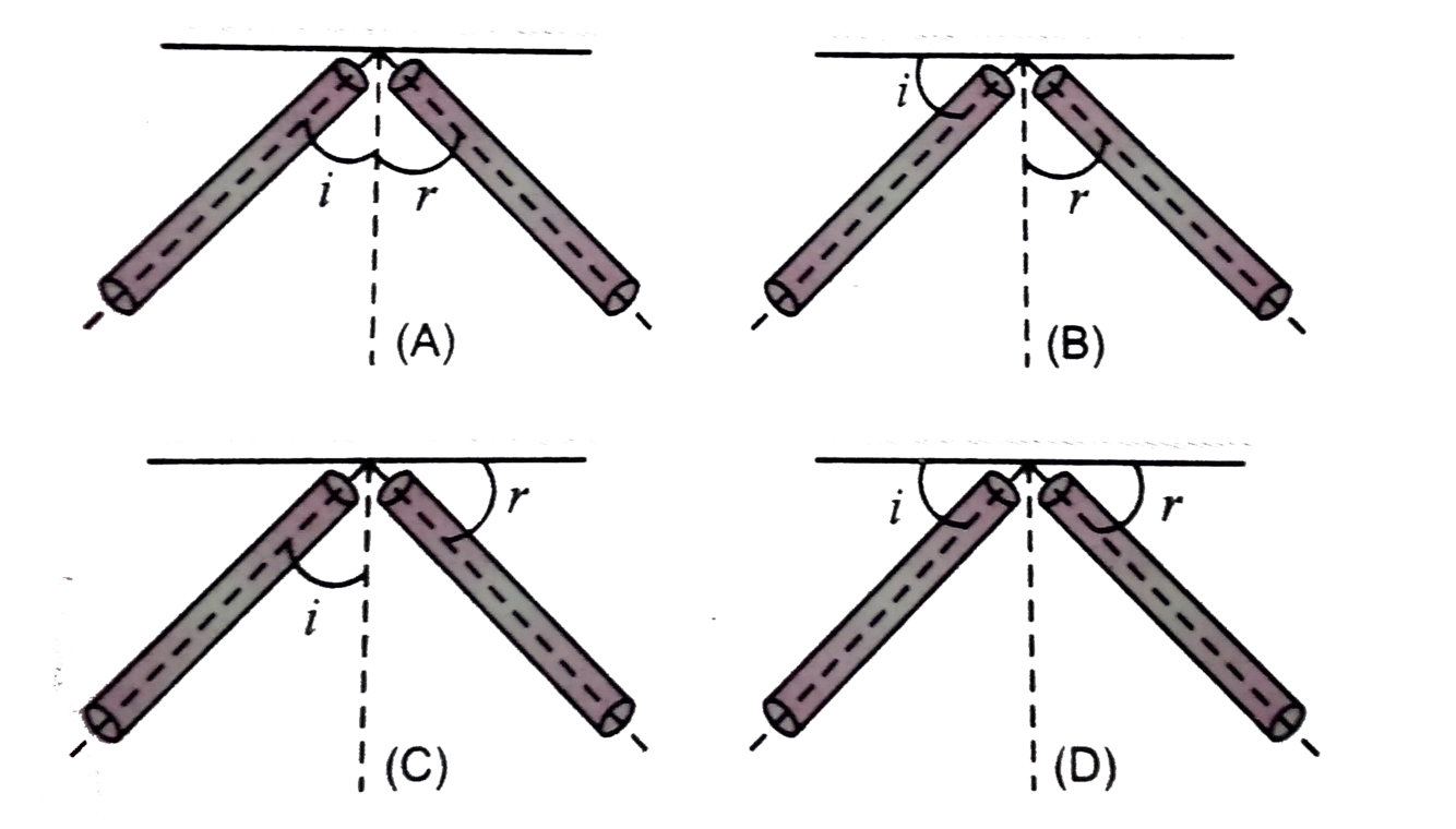Which diagram has the angle of incidence, i, and the angle of reflection, r, labelled correctly?