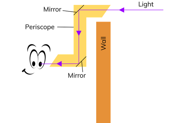 How does light travel along a periscope?
