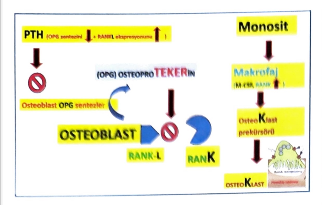 • Uyarılan osteoblastlar, RANKL (Receptor Activator of Nuclear Factor κB Ligand) adlı bir molekül üretir.