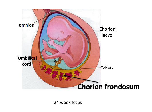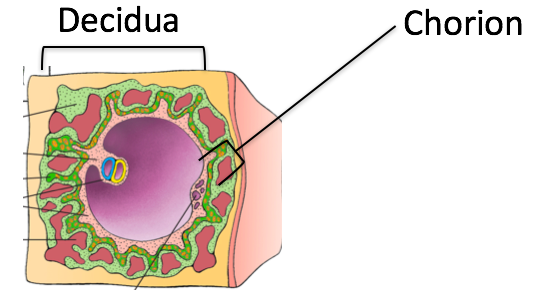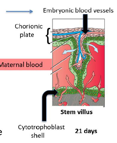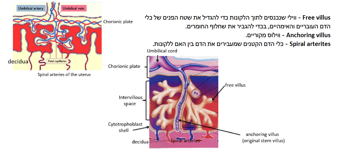אל החלק האימהי של השליה , שיוצר עוגן של השק הכוריוני לרחם
