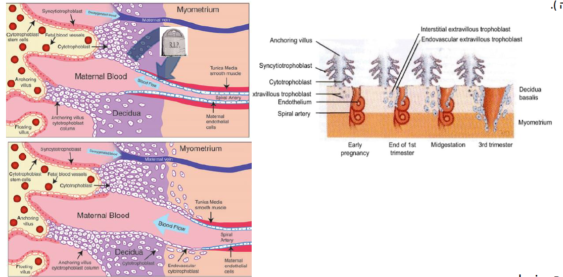 העורקים הספינליים שמזינים את ההלקונות הופכים לעבים יותר על מנת לספק יותר דם לשלייה.
