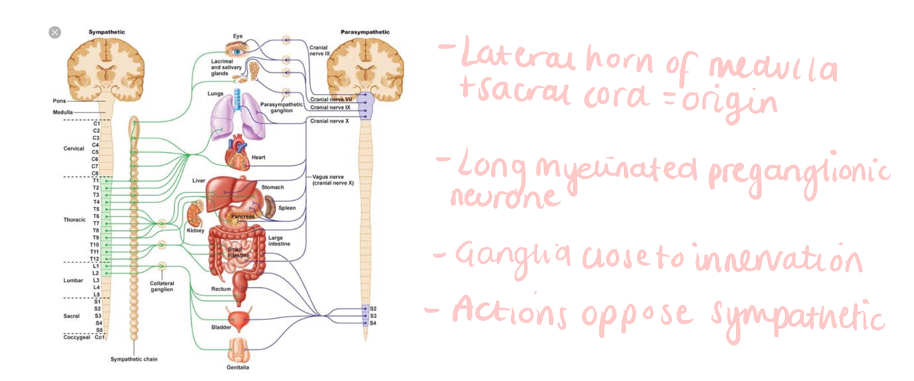 What is the anatomical structure of the parasympathetic nervous system?