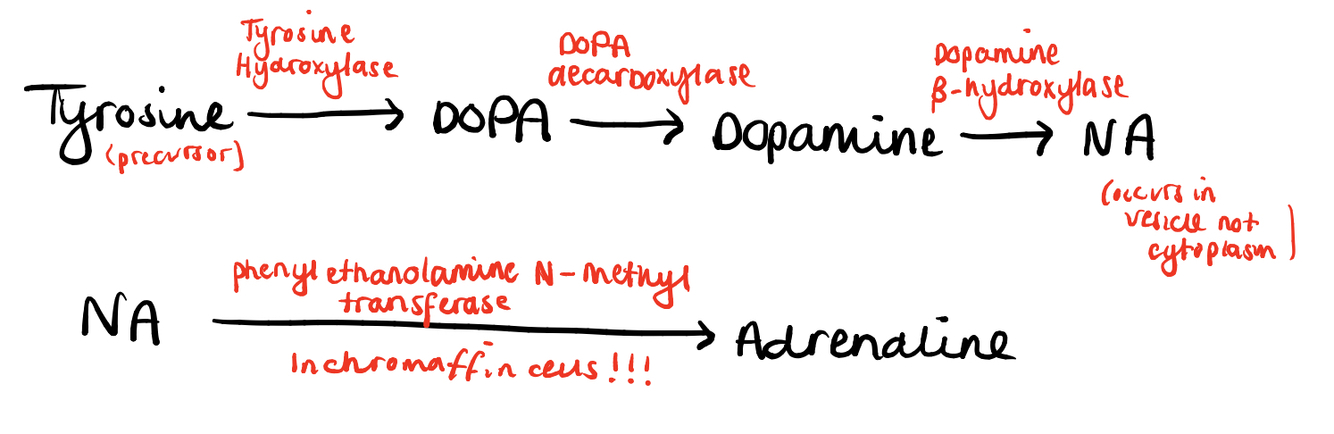 How is noradrenaline and adrenaline synthesised?