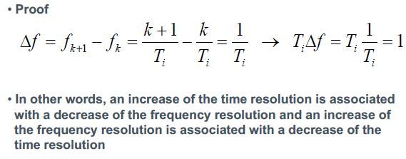 The uncertainty principle for the spectrogram states that the product of the time resolution Ti and the frequency resolution Δf is constant: