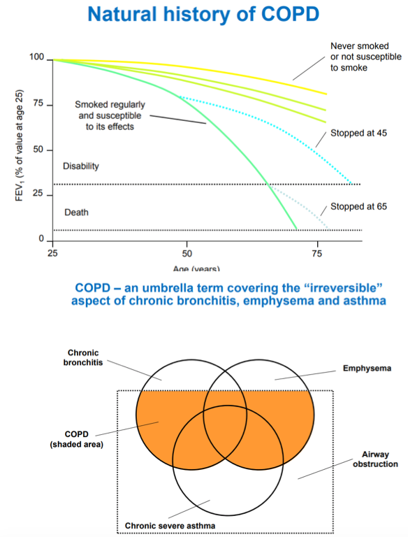 Smoking hx should always be documented for all with COPD. Pts should be encouraged to stop - what help can be offered?