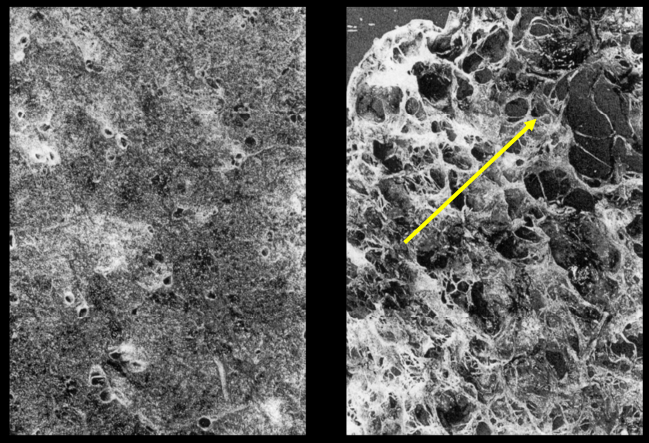 Alveoli destruction, bullae. L = thick and spongy :) , R = holey, useless :(