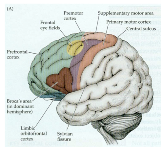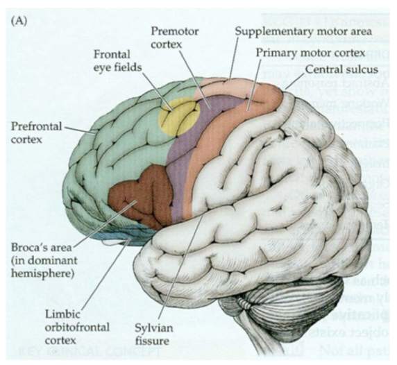 What is the function of the frontal lobe from anterior to posterior?