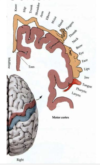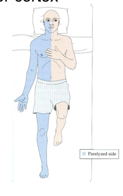 L primary motor cortex lesion resulting in R sided paralysis