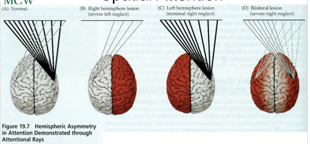 Non-dominant (Right side): drives attention to the world.