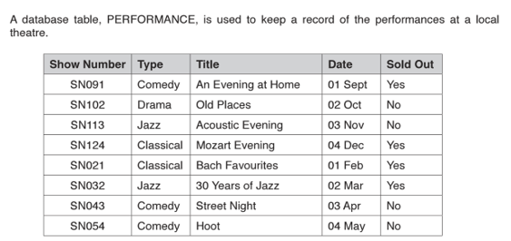 State an appropriate data type for the field Sold Out: Boolean