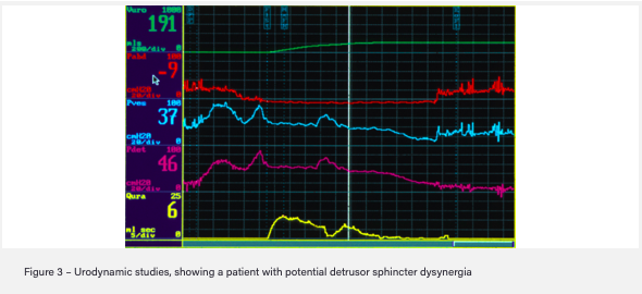- Urodynamic studies to look at flow rate, detrusor pressure