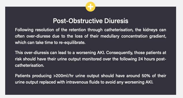 - If large retention volume (>1000ml) monitor for post-obstructive diuresis