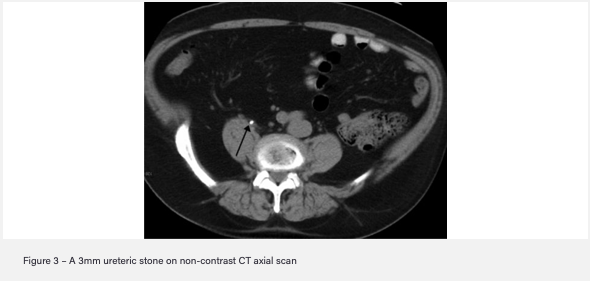 - Gold standard imaging: Non-contrast CT KUB