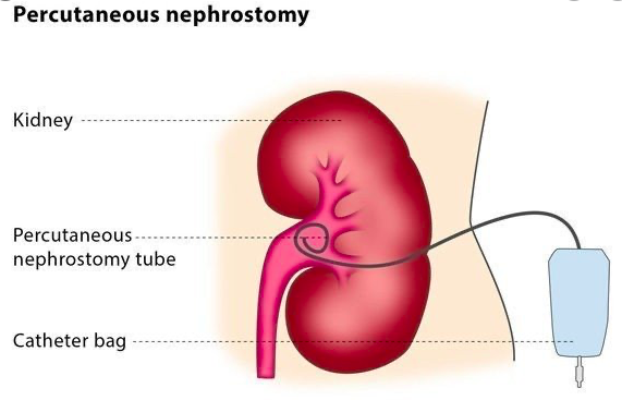 Percutaneous nephrolithotomy (PCNL): large and staghorn calculi. Percutaneous access then nephroscope put into renal pelvis and stones fragmented by lithotripsy