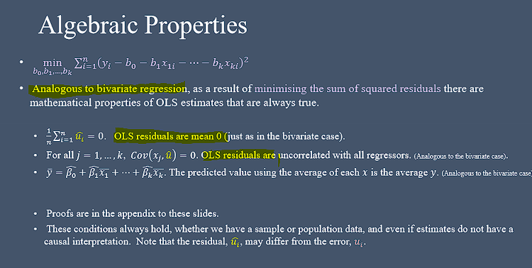 What are the mathematical properties of OLS in multivariate regression