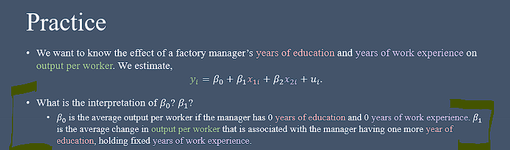 Interpretation for B0 and B1 in multivariate regression OLS