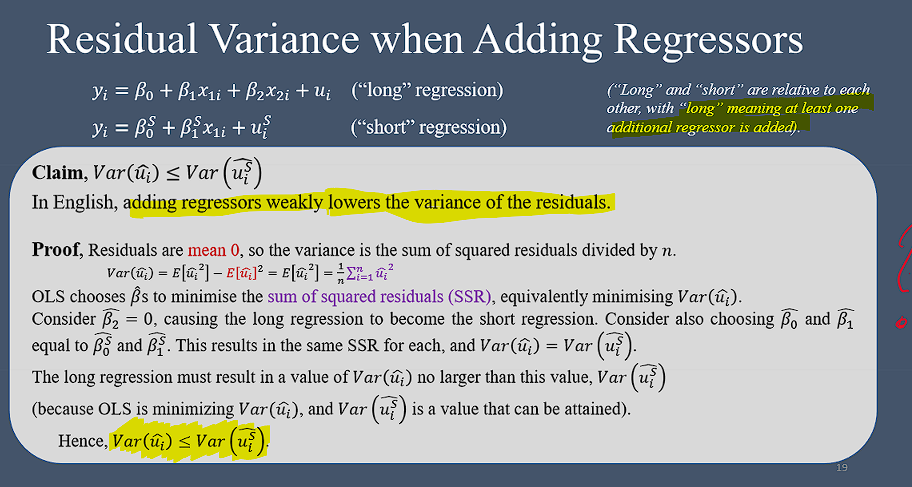 What happens to residual variation ( Var(uhat i) when you add regressors?