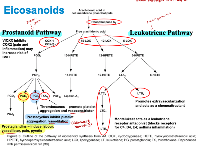 conversation of arachidonic acid to LTE (involves in asthma inflammation) and LTB (extravascularization