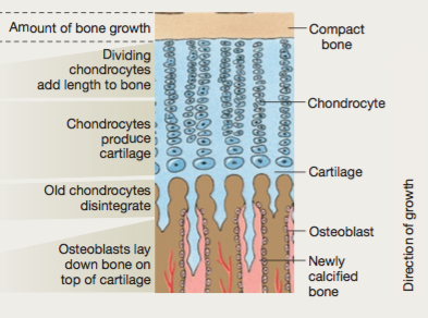 Describe the role in more detail of the osteoblasts in bone elongation (growth)