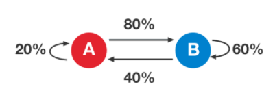Given a Markov chain in the following figure, what is the transition matrix (A) of this Markov chain?