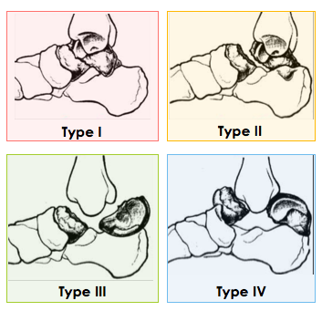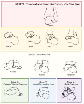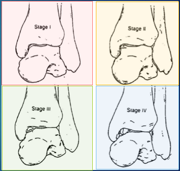 For TALAR DOME fractures: four stages of osteochondral talar dome