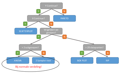 De hypothese toetsen die je uitvoert, hebben betrekking op de mogelijke oorzaken van het probleem, de X-en. Voor elke X voer je een afzonderlijke hypothese toets uit.
