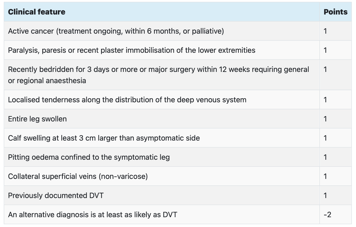 DVT likely: 2 points or more