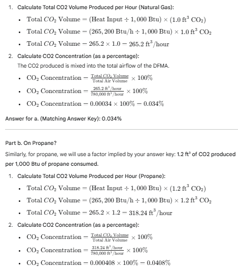 a. What is the expected amount of CO2 for a DFMA firing natural gas operating at an outdoor air temp of 55°F and a discharge set point of 72°F?