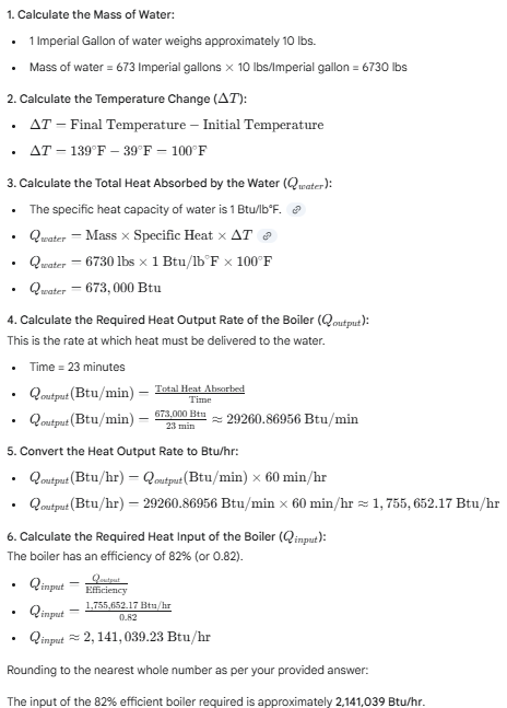 imperial gallons of water from 39 °F to 139 °F in 23 minutes.